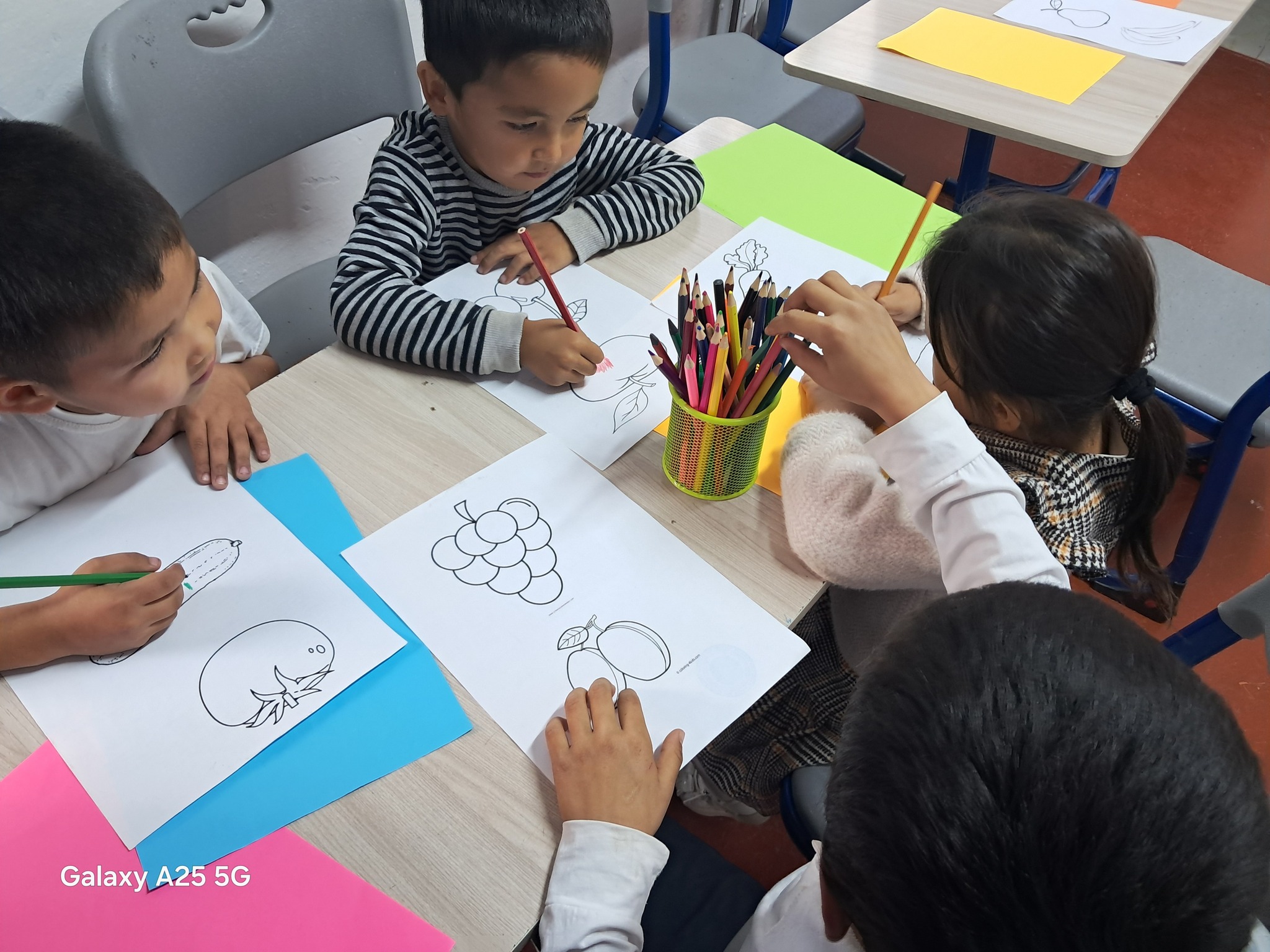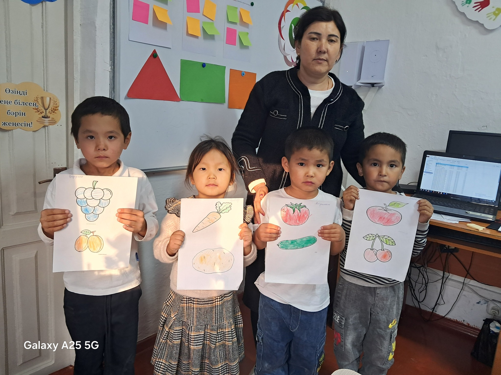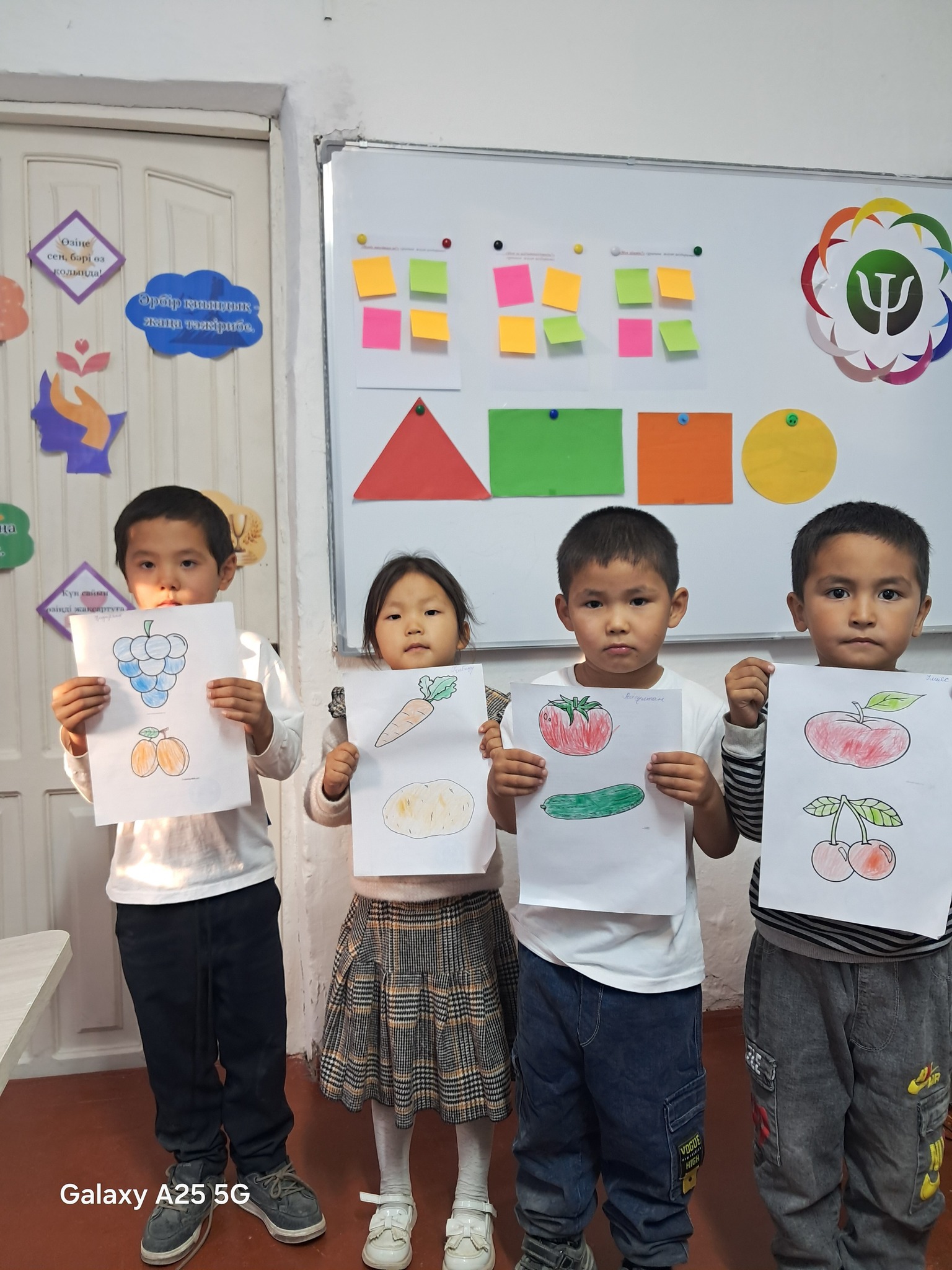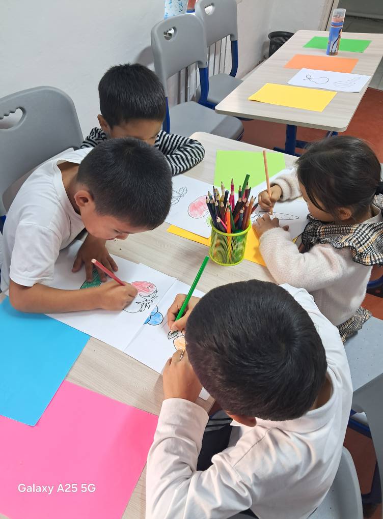 Мектепалды даярлық тобымен мектеп психологы Л.Абдуәлінің қазан айының жоспарына сәйкес, балалардың негізгі түстерді ажырату, атау және оларды заттармен сәйкестендіру дағдыларын дамыту мақсатында "Түстер әлеміне саяхат" тақырыбында ойын-жаттығу ұйымдастырылды.